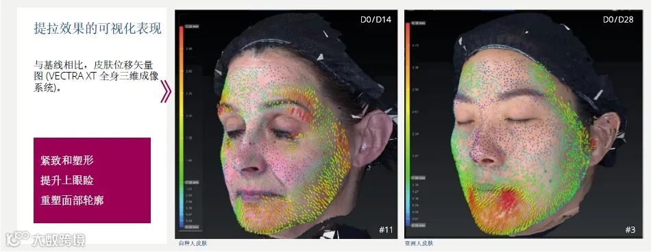 ▶ 短短2 周后,显示出明显的提拉功效。3 个月后,提拉幅度超过5%。
