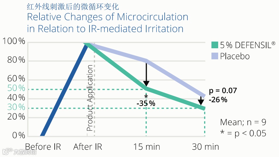 应对晒后修护,DEFENSIL可以显著改善IR 红外线照射30分钟后引起的皮肤泛红,15分钟快速强效舒缓肌肤。因此在儿童防晒,晒后修护,褪红等产品中应用广泛。