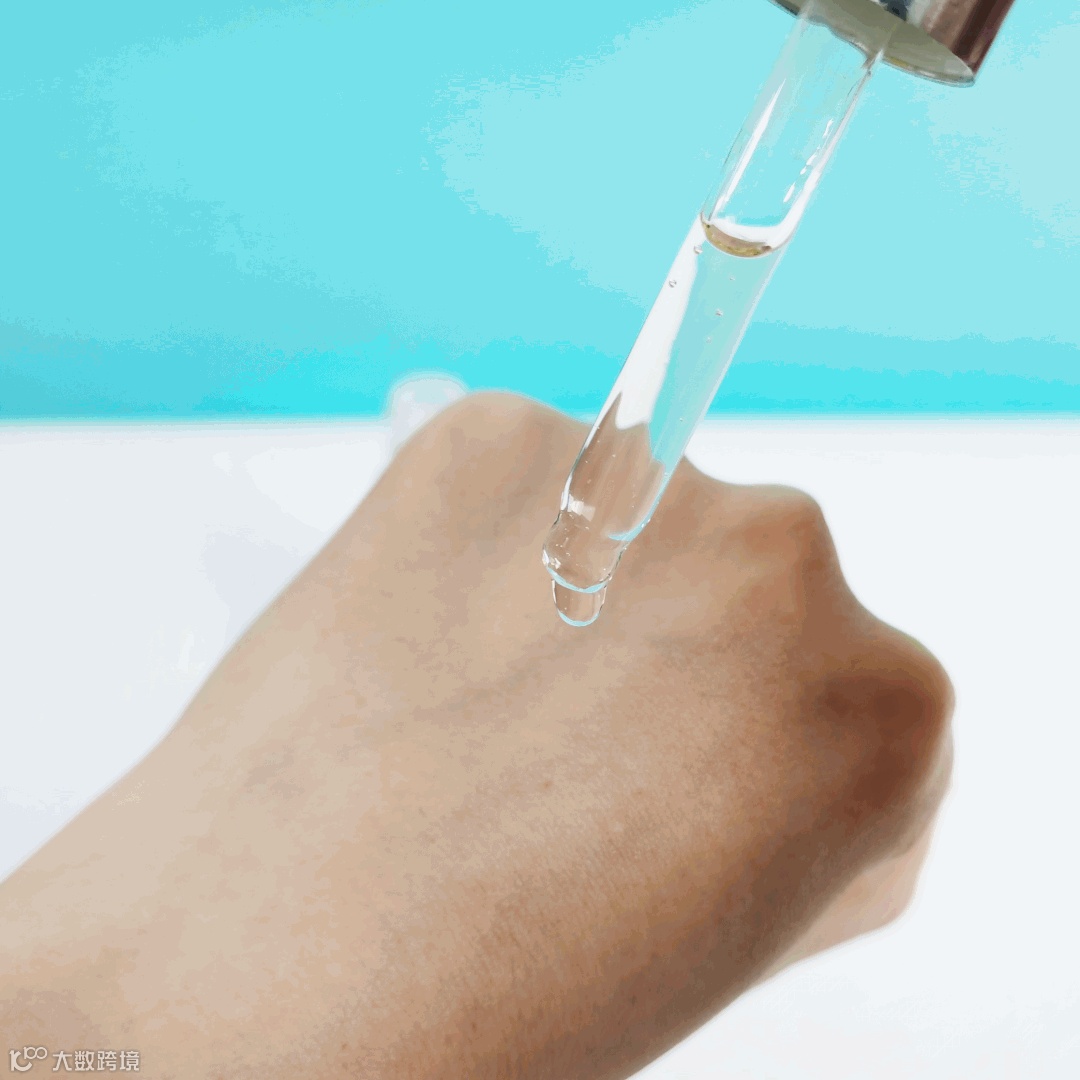 淡黄色液体外观,轻盈水润,上手柔滑,快速吸收。