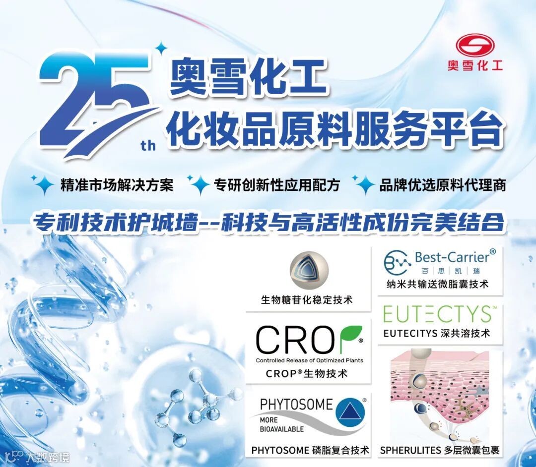 奥雪25年专注化妆品原料代理,竭诚为客户提供化妆品行业系列完整的市场解决方案,全球最新资讯、技术及原材料供应。