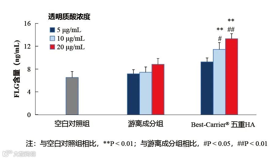 HaCaT细胞经游离活性成分和Best-Carrier® 五重HA处理24 h后,FLG含量均有增加,且与游离成分组比较,Best-Carrier® 五重HA处理后FLG含量增加明显(P<0.05)。