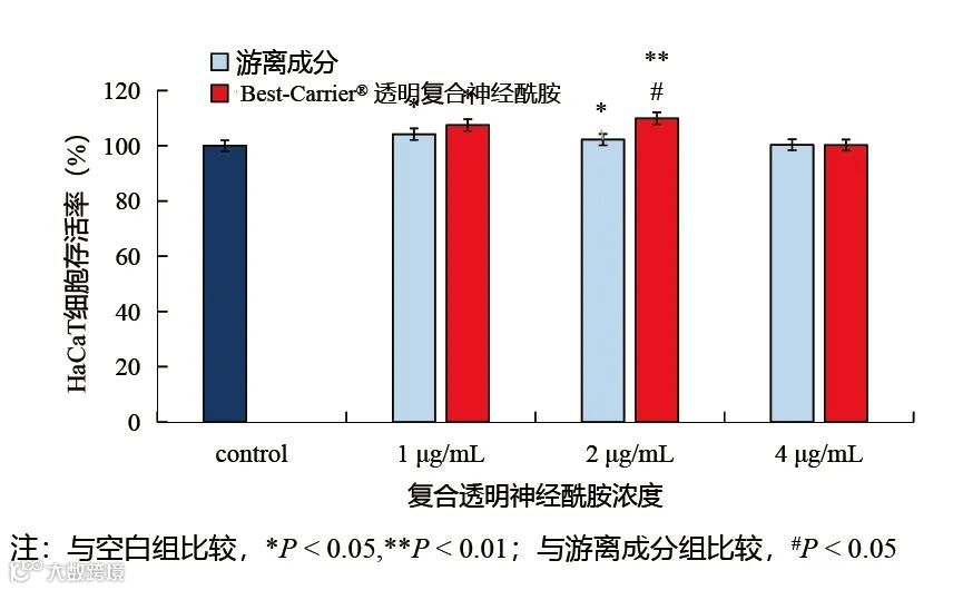 且与游离神经酰胺膏霜比较,3%Best-Camrier® 透明复合神经酰胺膏霜效果优于游离神经酰胺。