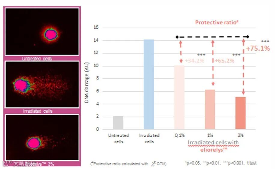 ② Eliorelys™能够有效地减少蓝光辐射造成的DNA损伤