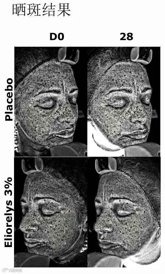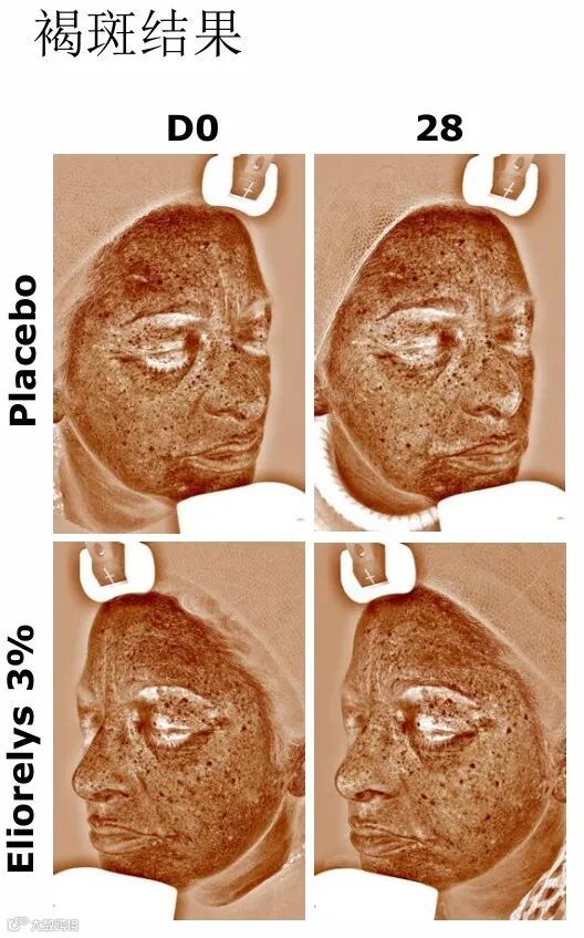 从人体测试的功效来看,3%Eliorelys™的产品能够有效减少晒斑和褐斑,呈现出更匀净、光滑的皮肤外观▼