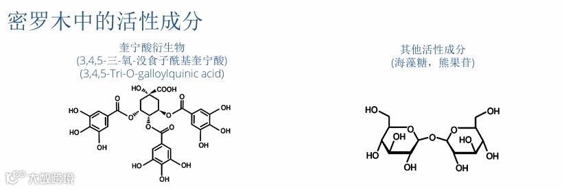瑞士RAHN提取的密罗木里面含有的活性成分与市面上主打海藻糖的概念不一样,其主要活性成分是3,4,5-三-氧-没食子酰基奎宁酸,具备强大的抗氧化能力。
