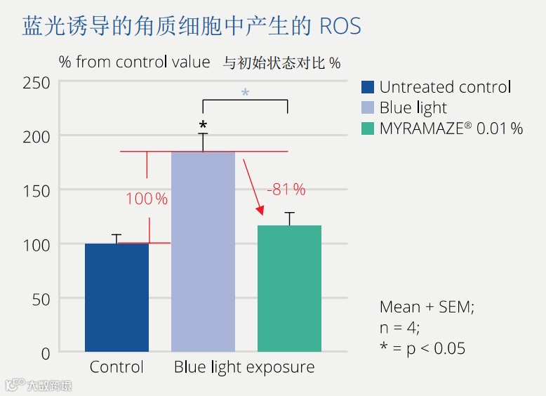 ③ MYRAMAZE®明显降低蓝光带来的皮肤压力