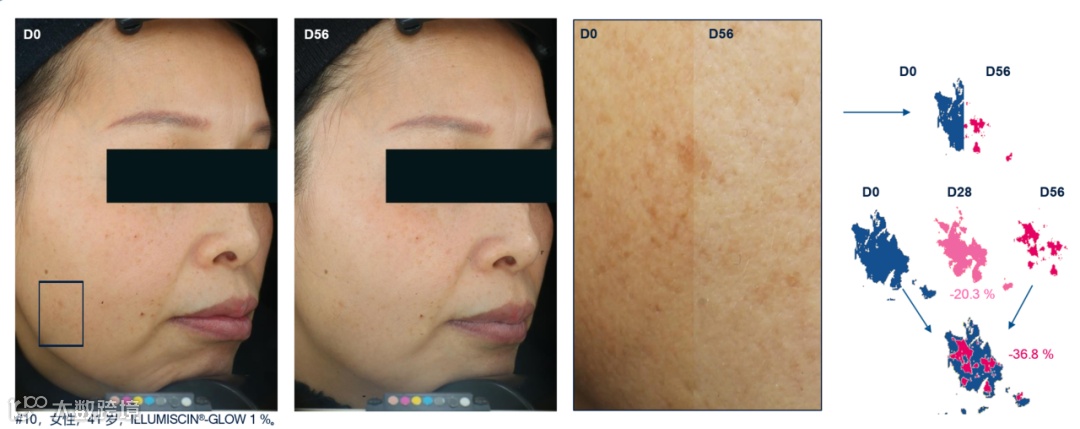 ILLUMISCIN®GLOW减少皮肤色素沉着面积达39%