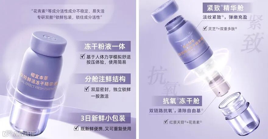 因此,市面上主打花青素的品牌少之又少,相宜本草推出的“双效鲜活”系列倒是让人眼前一亮。