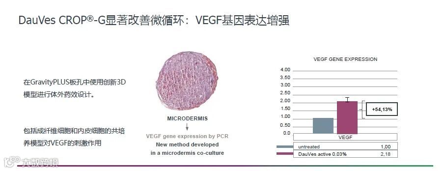 ▶ DauVes CROP®-G促进内皮化微真皮中VEGF(促血管生成的一种信号蛋白)表达增加,从而改善整体微循环。