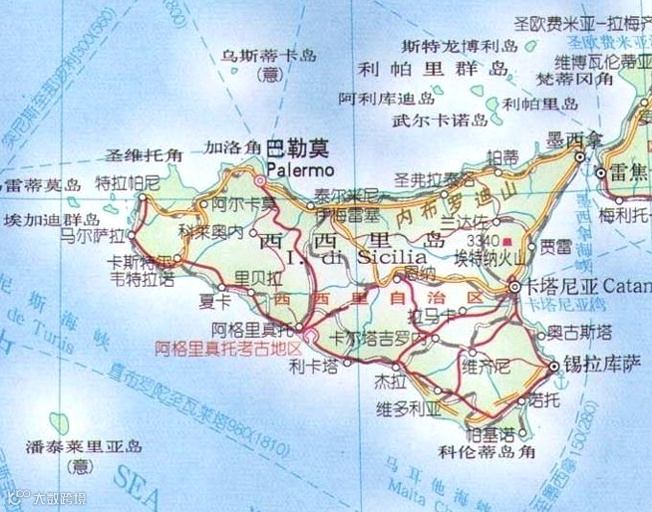 西西里岛位于意大利南部,是地中海最大的岛屿,是西方文明的摇篮,形状宛如一个三角形。