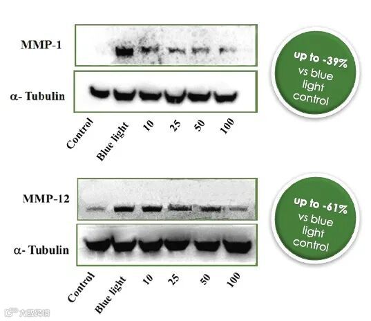 OLEA-HT 10橄榄果提取物,不仅能抵御蓝光对细胞的损伤,减少自由基生成,保护DNA免受蓝光伤害,还能促进胶原蛋白合成,抑制胶原酶(MMP-1)和弹性蛋白酶(MMP-12)的产生,从而保持肌肤的紧致与弹性。