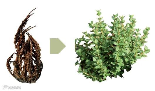 密罗木生长于南非高海拔类沙漠地带,是300多种复活植物中唯一的一种木本植物,昵称“南非凤凰草”,能忍受长期干旱,滴水复活。