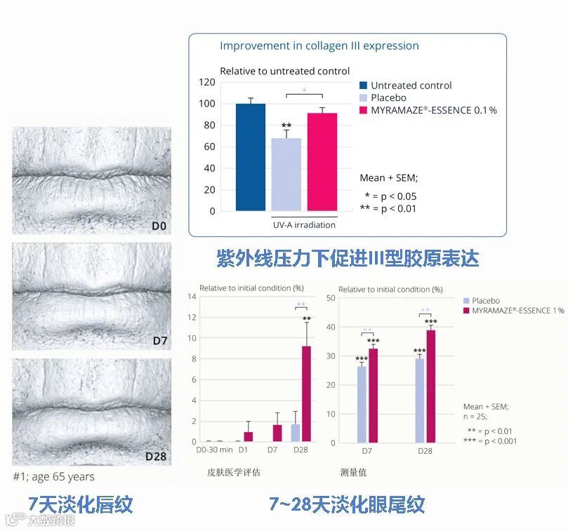 使用含有0.3%Megassane®的乳霜的结果看起来更加健康,对颧骨和太阳穴具有特殊功效。