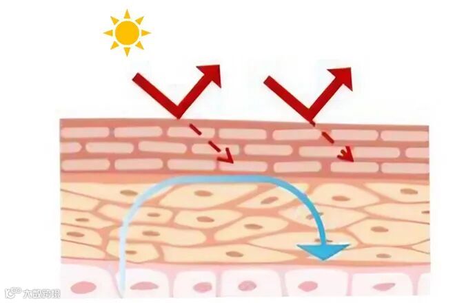 日晒高温使皮肤水分迅速蒸发,皮肤容易缺水干燥;紫外线对角质形成细胞造成损伤,释放炎症因子,降低水通道蛋白的表达,破坏屏障功能。