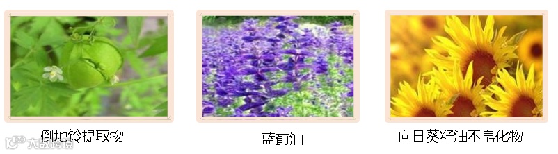 由核心成分—倒地铃、车前叶蓝蓟以及向日葵籽油不皂化巧妙组成的舒敏复合物。