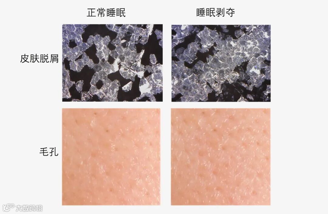 ▶ 皮肤睡眠剥夺前后脸颊区域的皮肤脱屑、毛孔变化