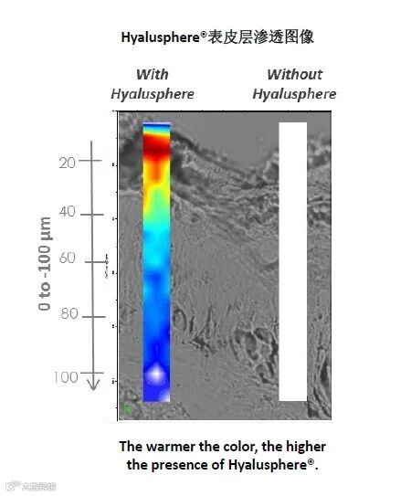 Hyalusphere® 能穿越角质层,并渗透到表皮层100μm深处▲
