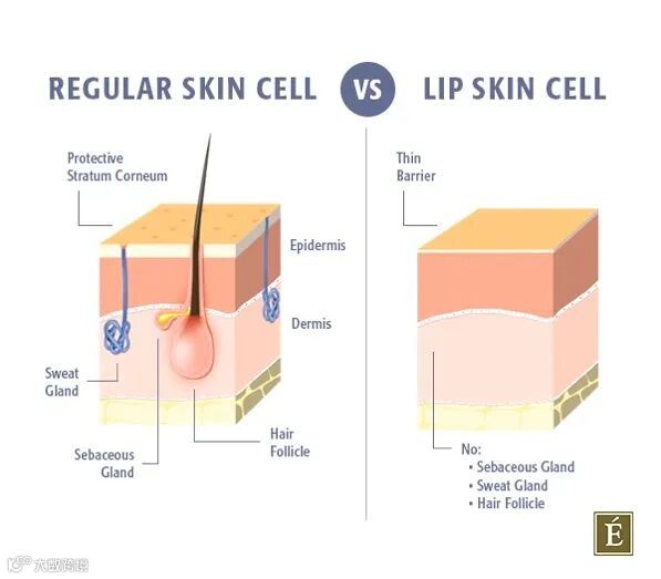 唇部缺乏一层天然的油脂保护膜,更薄的角质层导致对抗环境的耐力弱,所以特别容易衰老。