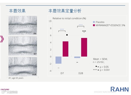 临床测试表明MYRAMAZE® -ESSENCE可丰盈双唇,减少唇部皱纹。