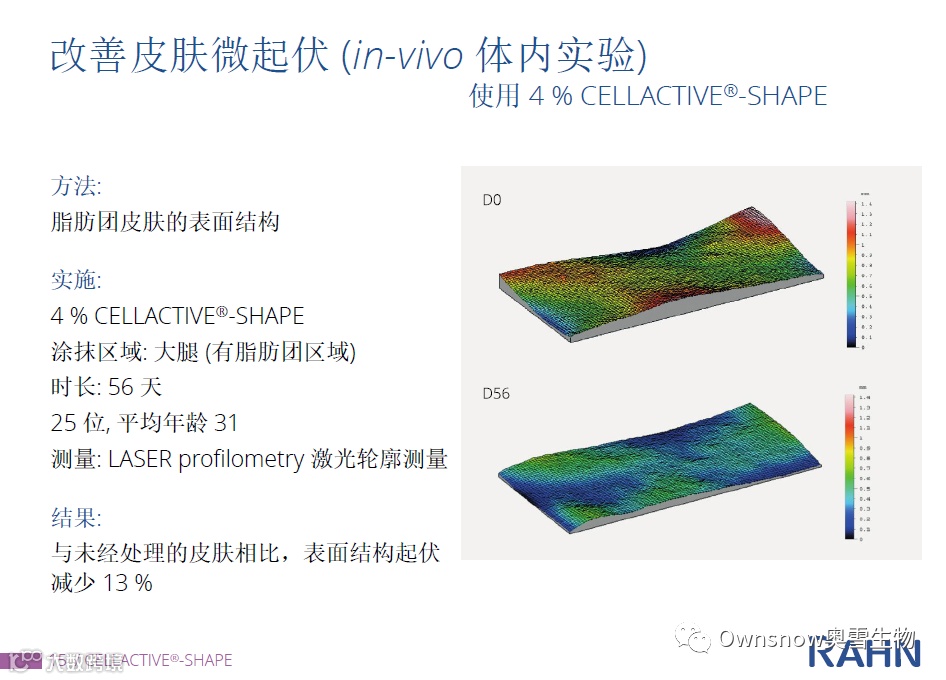CELLACTIVE®-SHAPE一方面通过促进脂肪分解&去水肿,另一方面通过紧致表皮和真皮层的致密度,从而有效改善蓬松状的橘皮组织。