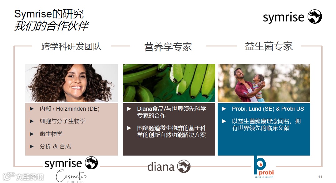 Symrise与营养学专家-Diana食品,益生菌专家-Probi建立战略合作伙伴关系,成立微生物组研发平台 SymProBiome,用于微生物组研究及新产品开发,涉及皮肤、头皮、口腔、肠道和腋下区域的成分开发。