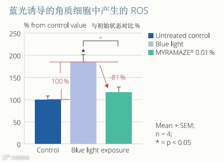 而对于上班族来说,电子产品带来的蓝光伤害MYRAMAZE®也可以明显降低蓝光带来的皮肤压力▼