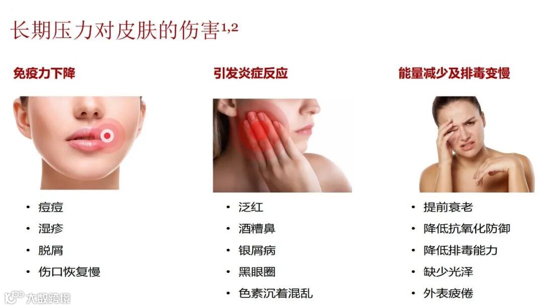 除了社会心理压力,环境污染、UV辐射等因素也会导致皮肤长期处于压力之下,皮质醇过度表达。