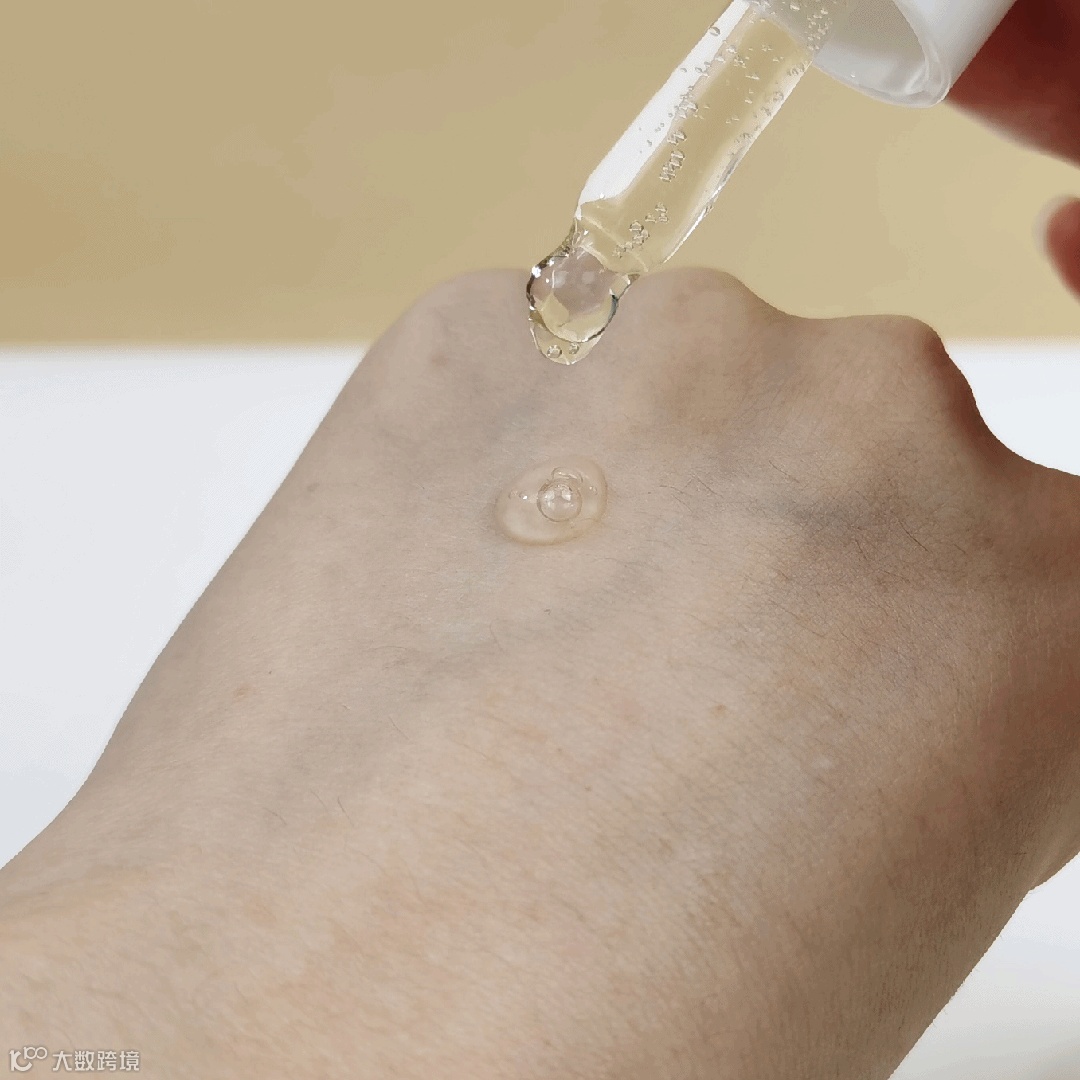 浅黄色液体,质地清爽不粘腻,水润与丝滑肤感,干后肌肤有紧致提拉感。