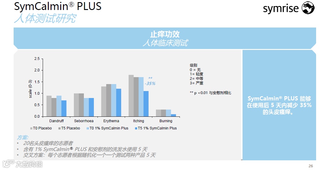 ▶ 5天使用含SymCalmin® PLUS的洗发水,头皮瘙痒减少35%