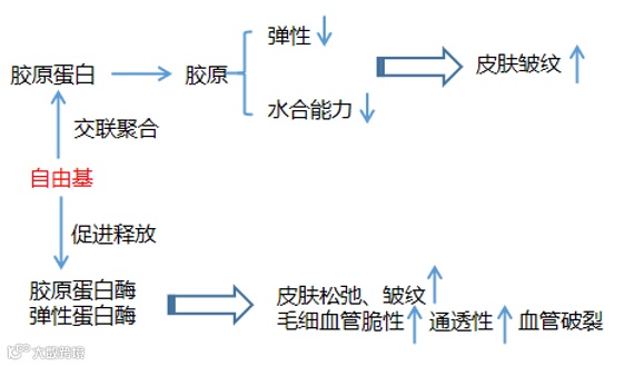 自由基也会促进胶原蛋白酶和弹性蛋白酶的释放,进一步导致皮肤衰老加剧。