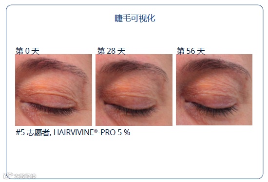 在第56天:睫毛长度+6.6倍,睫毛直径+11倍,睫毛体积+7.8倍。