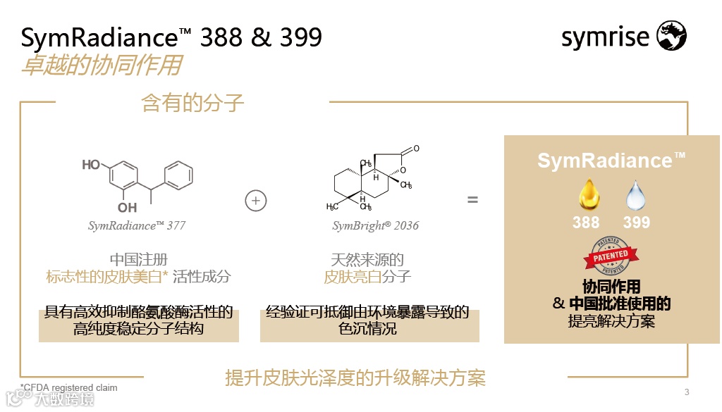 美白明星377的升级版来啦!SymRadiance™ 388 & 399馨赋白是美白肌肤的升级版解决方案。
