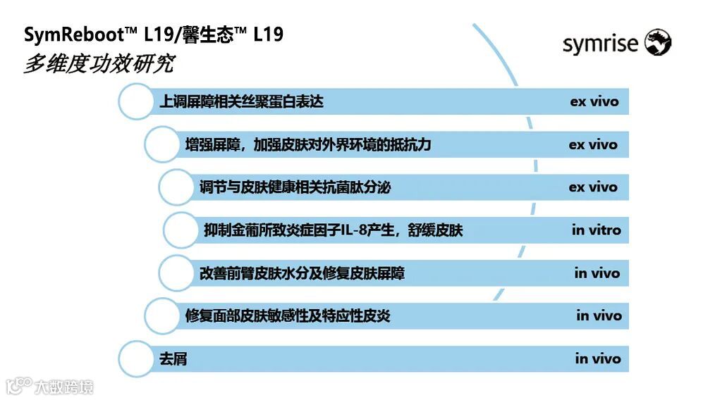 德之馨的微生态创新活性原料—SymReboot™L19馨生态,模拟活菌(PSEUDOBIOTIC 拟态技术),具有特定乳酸杆菌菌株完整的结构功效,与皮肤产生特定的“微语言”(交互作用),激活皮肤本能的防御系统,抗炎、修复屏障,有效改善皮肤干燥,敏感&特应性皮炎倾向肤质。