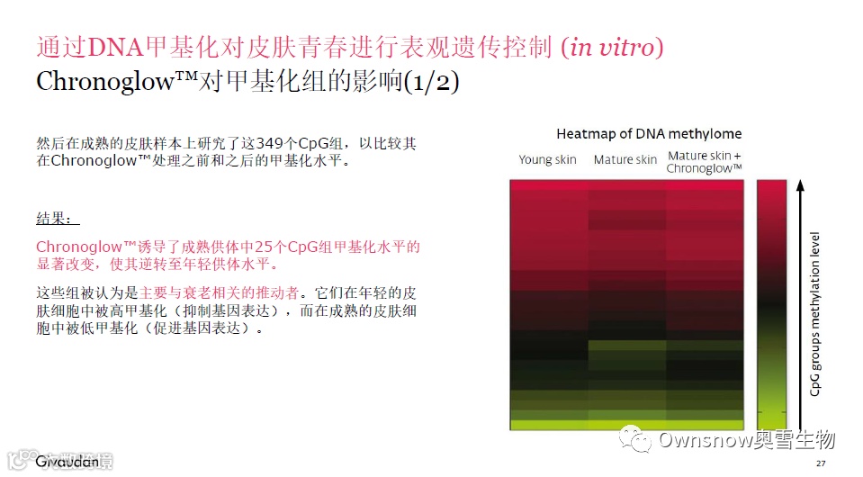Chronoglow™被证实可以通过DNA甲基化对皮肤青春进行表观遗传学控制(in vitro)。