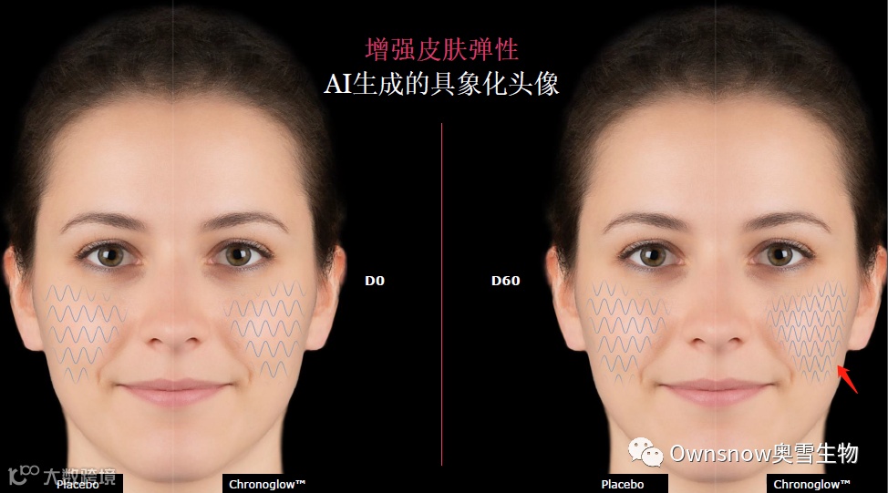 临床评估显示Chronoglow™:从皮肤弹性到亮度再到光泽,三重维度改善皮肤光泽。