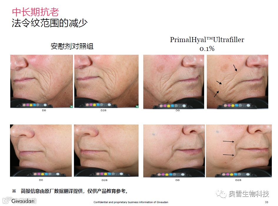临床测试验证PrimalHyal™ Ultrafiller即时和长效抗老化、抚平皱纹的功效: