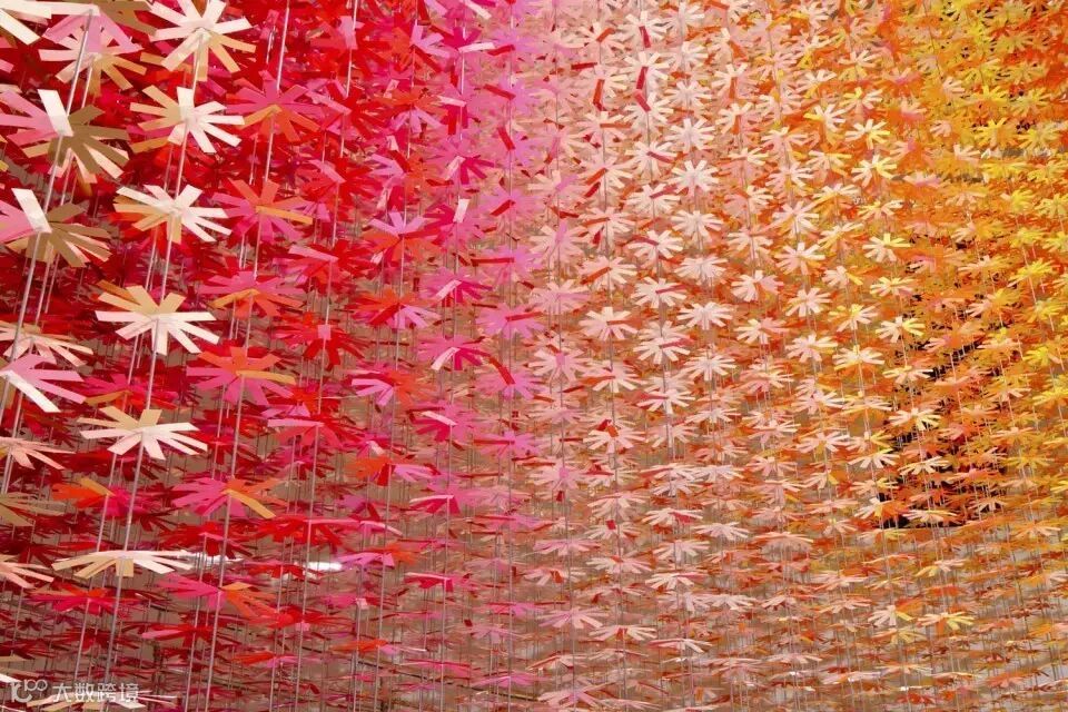 尽管每朵花都只是重复着微小简单的动作,但当它们以巨大的数量集中在一处,并被赋予丰富的色彩时,便能够释放出巨大的能量,颠覆人们的感官。