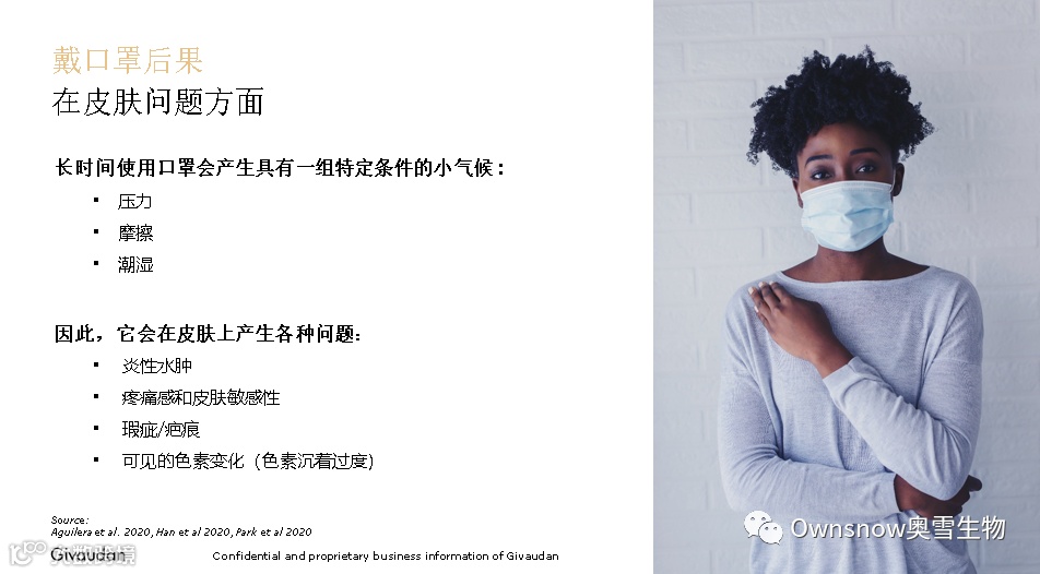口罩的超长待「肌」,给肌肤带来了新的问题—“口罩肌”,指的是因长期佩戴口罩导致的各种皮肤问题,如长痘、泛红、瘙痒等等。根据奇华顿一项内部调研数据显示,在口罩肌问题中,消费者主要关注的话题是皮肤刺激、发红和额外的敏感。