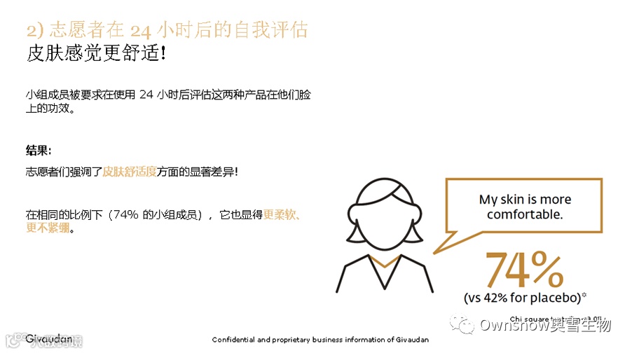 • 志愿者们强调了皮肤舒适度方面的显著差异!在相同的比例下(74% 的小组成员),Masknyl™使肌肤更柔软、更不容易紧绷。