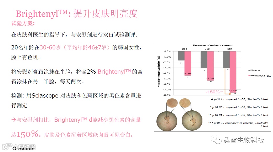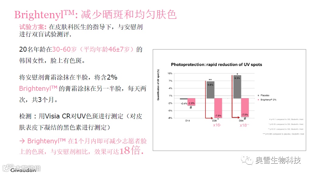 或许当您深入了解这款来自奇华顿的新一代美白活性物—Brightenyl®之后,会帮您打开思路,助您开发出更具特色的美白护肤产品。