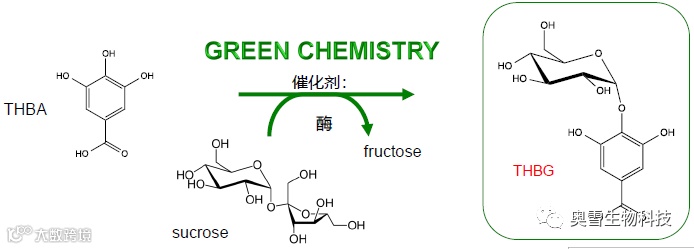 三羟基苯甲酸(THBA,没食子酸)是知名的天然美白分子,具有强效酪氨酸酶抑制能力和极佳的抗氧化效果,但THBA高度不稳定,容易分解,在水中几乎不溶解。