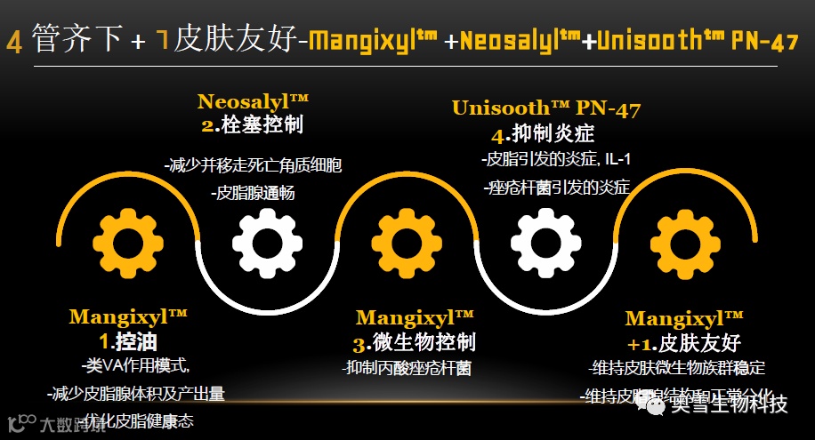 4靶向+1微生态平衡,针对性的解决痤疮问题。