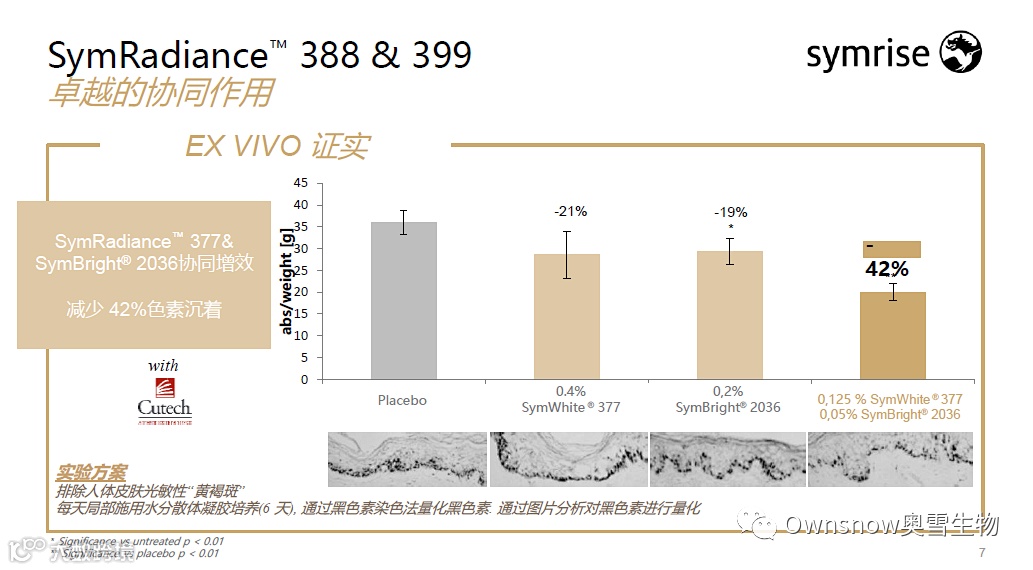 SymWhite® 377和SymBright®共同作用显著改善42%的色素沉着。