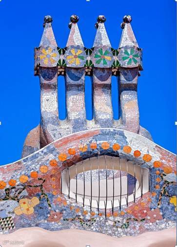 高迪设计巴特洛公寓的灵感来源于一个故事:英雄圣乔治为救出被龙困在城堡里的公主,用剑杀死了龙,龙的血变成了一朵鲜红的玫瑰花,圣乔治把玫瑰花献给了被救的公主,所以这座房子的每一个设计都有着特殊的含义。