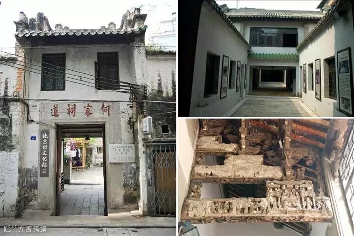 庐江书院是越秀区内保存得最完整的一座清代书院。现为居民住宅。书院的门楼为锅耳风火山墙、磁筒瓦面、绿琉璃瓦剪边,高两层,门上镶石额“何家祠道”。