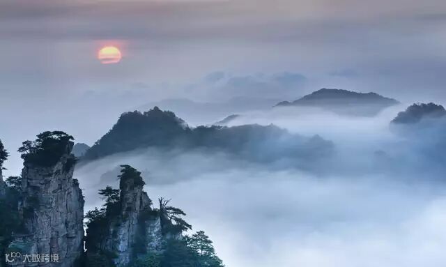 日出腾空一刻,张家界云雾缭绕,仿佛水墨山水画一般的情景,那一刻的冲击力,让人热泪盈眶。
