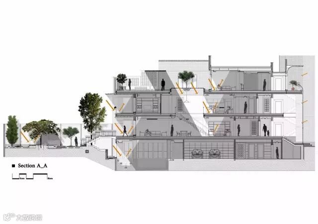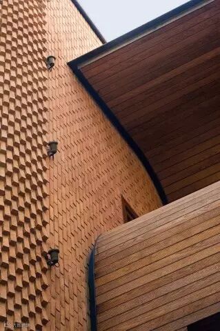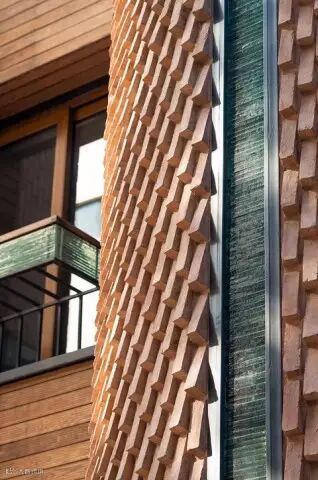 红砖采用倾斜的砌法,表现出丰富的质感与阴影,让建筑更富情感。