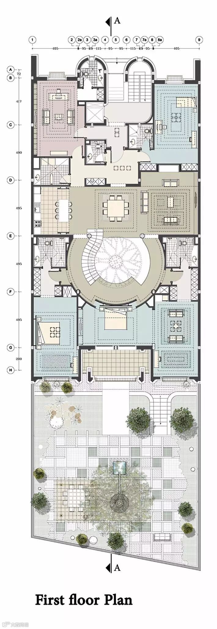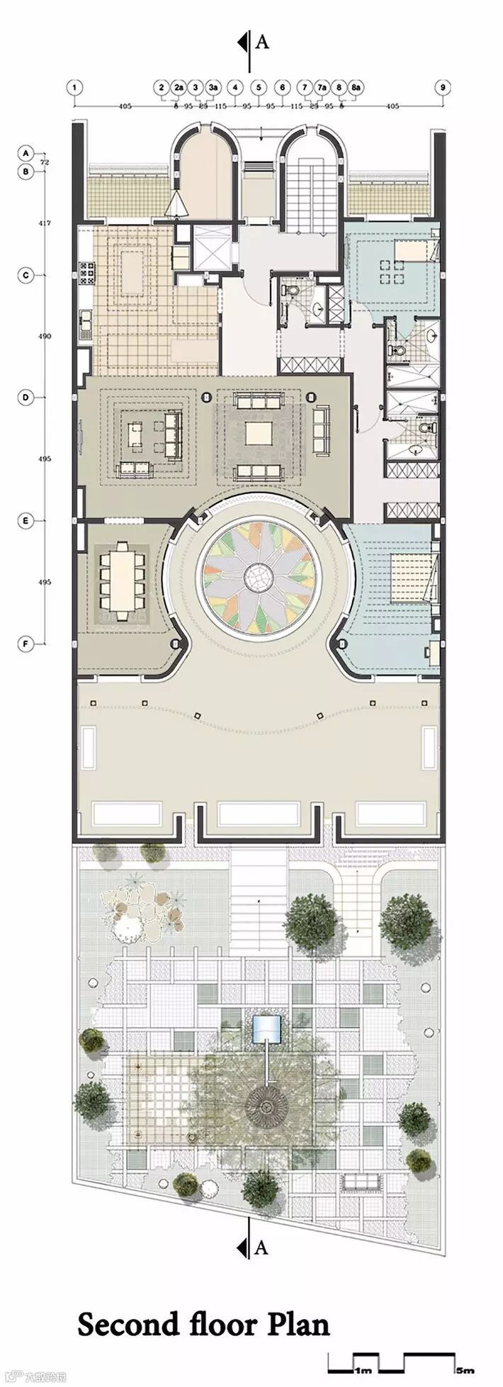 圆形的天井,唯美而动人,富有当代现代美学的空间,灵动诗意!