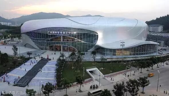 ▼广州国际体育演艺中心位于广州市东部、萝岗开发区科学城萝岗区开创大道北内,建筑物包括地上4层,地下1层的主场馆;地上3层,地下2层的停车楼;地下2层的室外环形车库。工程总建筑面积为130312.8㎡,是广东省唯一满足NBA比赛标准的篮球馆,亦是迄今为止中国为数不多的专业篮球馆,场馆既可以进行篮球、体操、冰球、花样滑冰等的比赛,还可进行各类大型文艺表演。