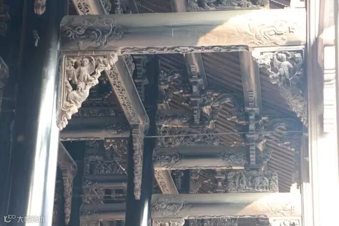 对于建筑物内部的重要部位,岭南建筑也通过集中雕饰来强调其地位。如建筑组群中神龛的装饰,往往集中了装饰的精华,使之光彩夺目。在潮汕地区,梁架被称为“五脏内”,以喻其在建筑内部的重要地位。